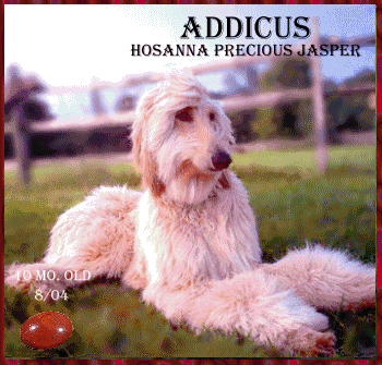 CH Hosanna's Garnet (we call him 'Red Man'), and CH Hosanna's Diamond Girl ('Dee') are stayed here at Hosanna Afghan Hounds with us. Dee finished her CH on 5/29/05, at 19 months old! Here are show results and photos, also some CUTE Monkey Whiskers photos of their sister and brothers. BOOKMARK THIS page to follow their careers. We'll always put the latest Precious Puppies litter info here. Red's and Dee's photos can be clicked on to view enlargements. |